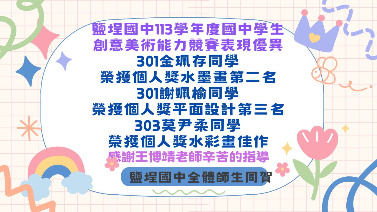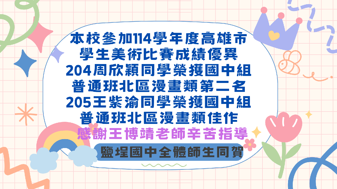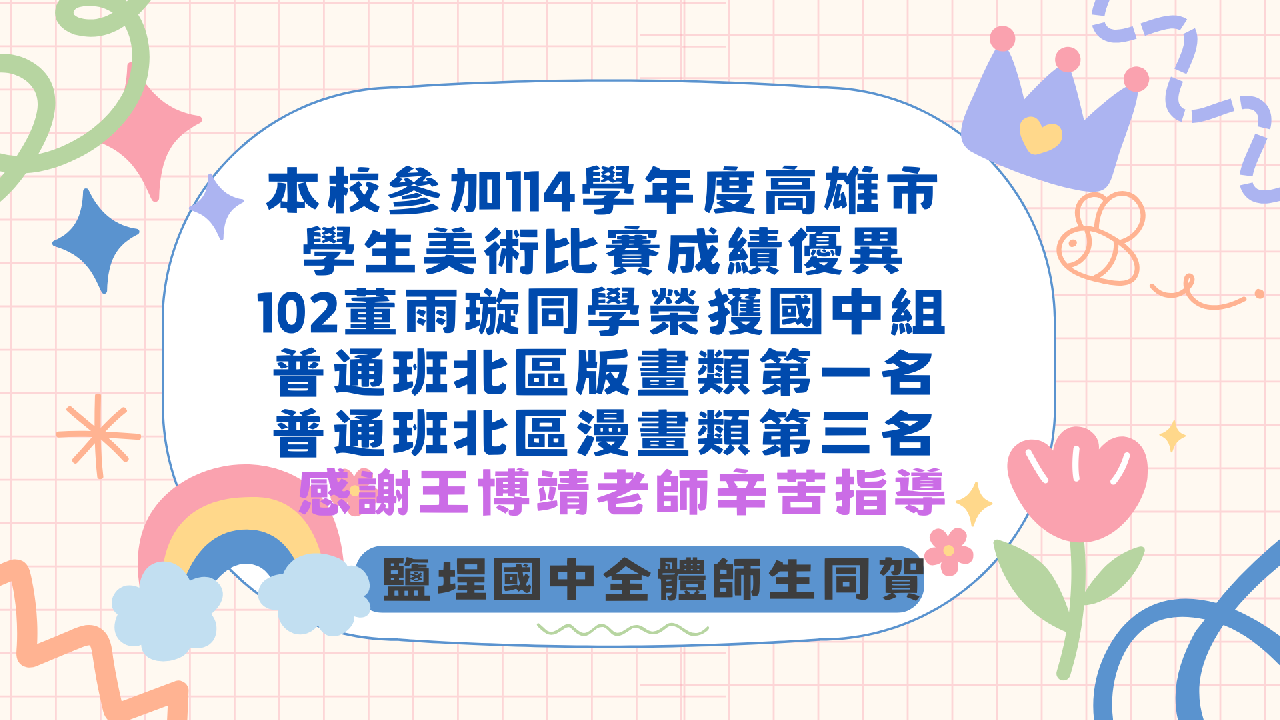 教務處:賀鹽埕國中114學年度高雄市學生美術 ...