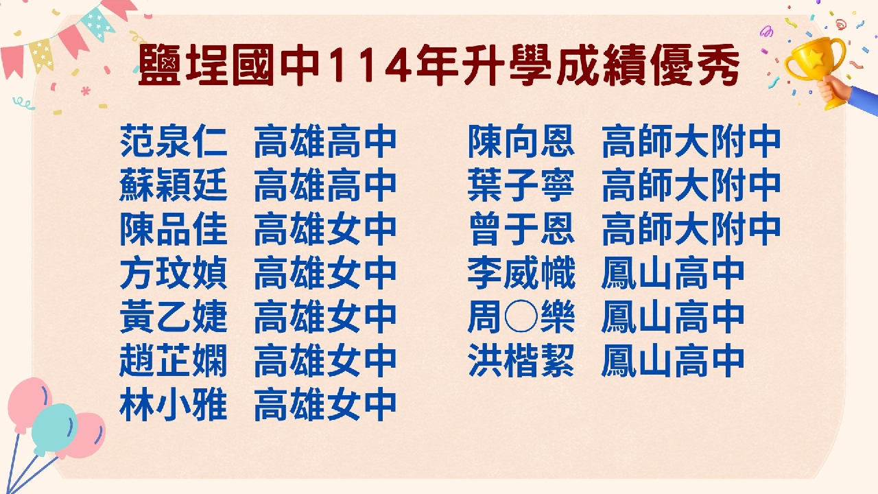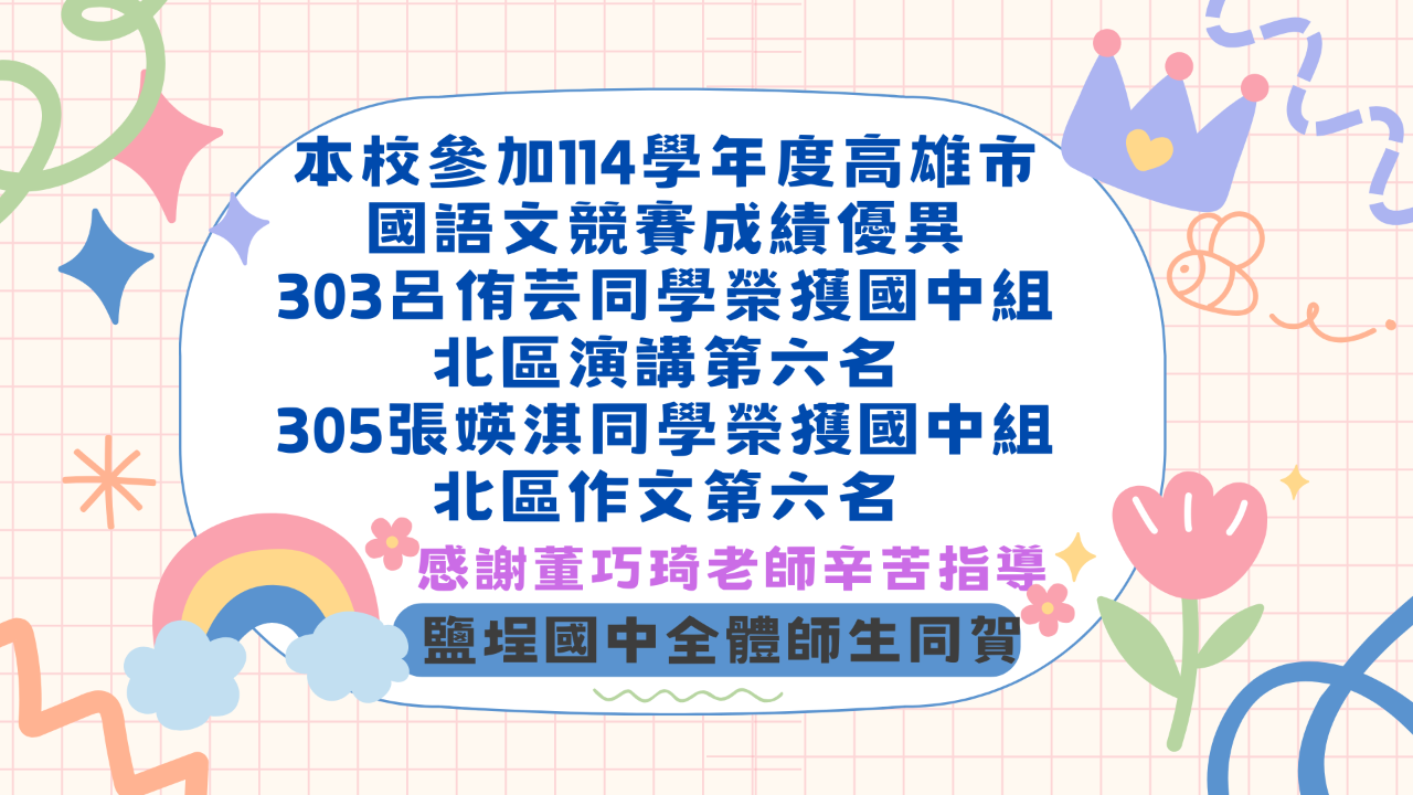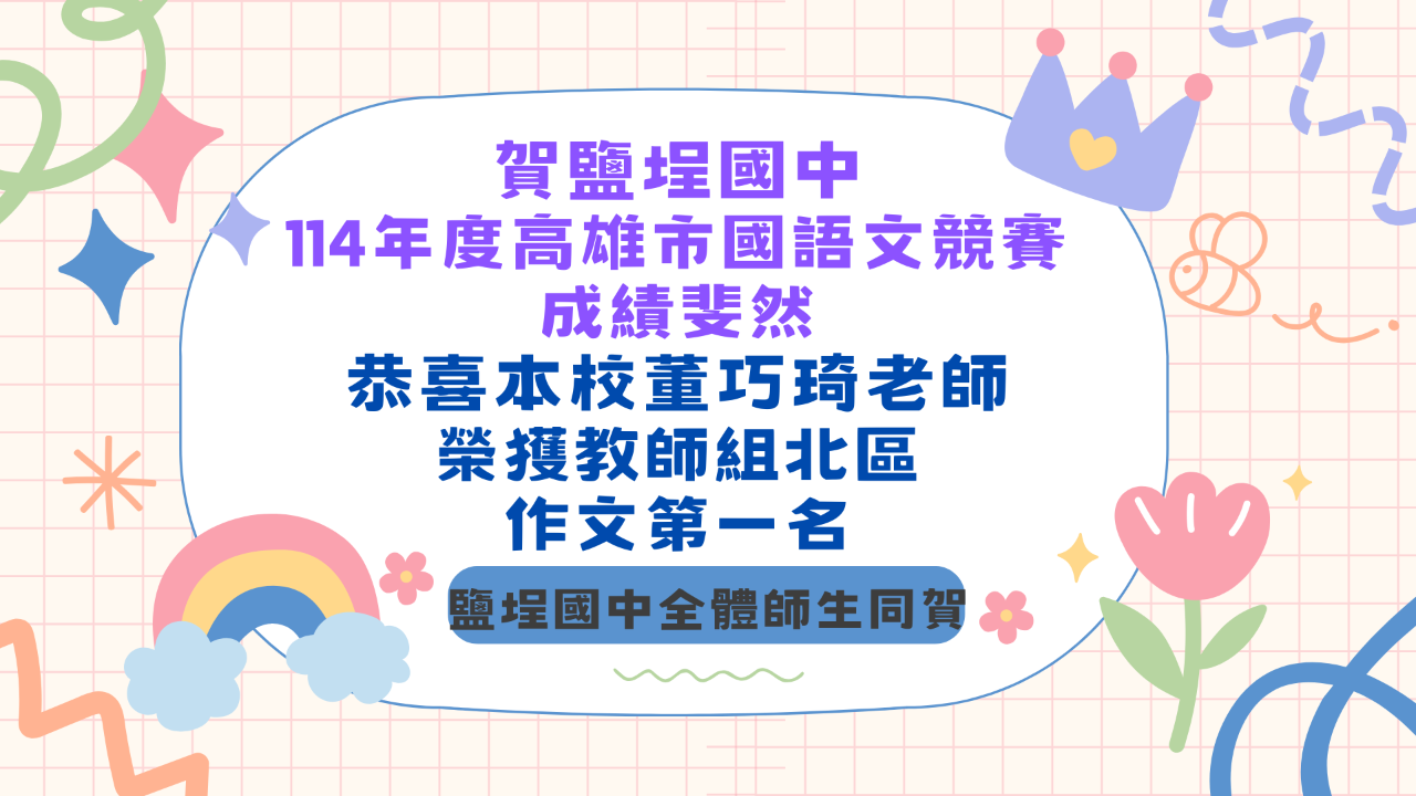 教務處:賀鹽埕國中114學年度高雄市語文競賽 ...